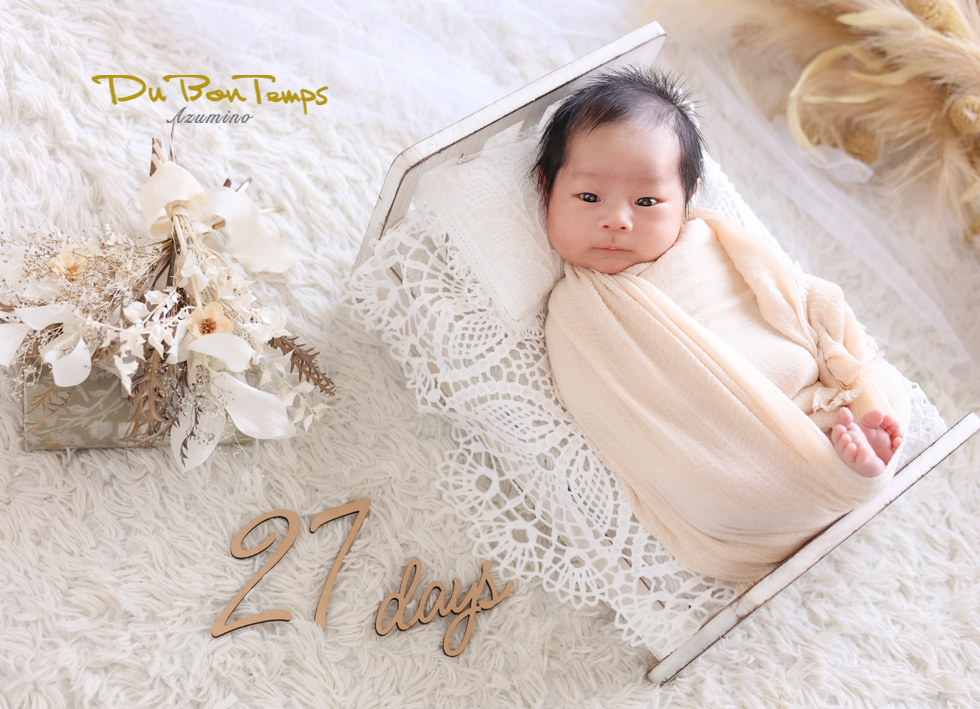 おくるみは巻かれているのが良かったのか、お利口さんに撮影してくれました!