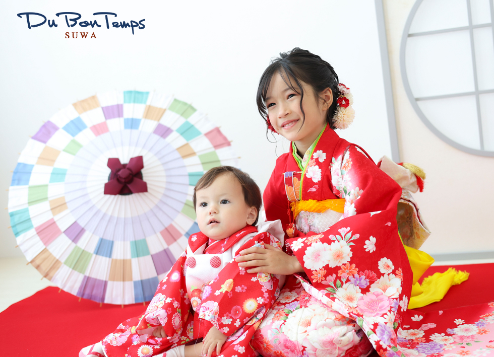 おそろいの赤いお着物お似合いでとってもかわいい♪