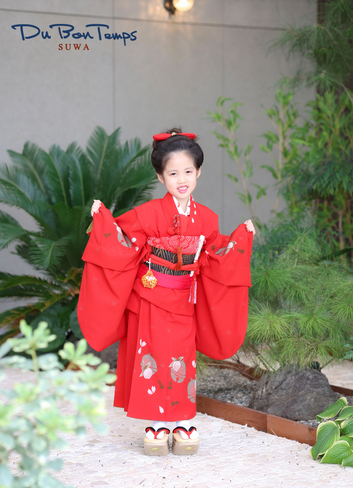 真っ赤なお着物と厚底のお草履